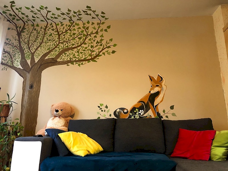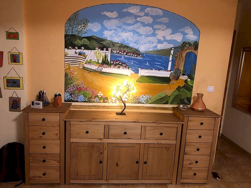 Ez már munkaigényesebb falfestmény, kb. két napot fogok rajta dolgozni. A mellékelt kép segít megítélni, hogy az általad megálmodott festmény ebbe a kategóriába tartozhat-e. A végleges árat egyeztetés után fixáljuk. Egyeztetésért katt az „Ilyet álmodtam meg a falamra” gombra!
