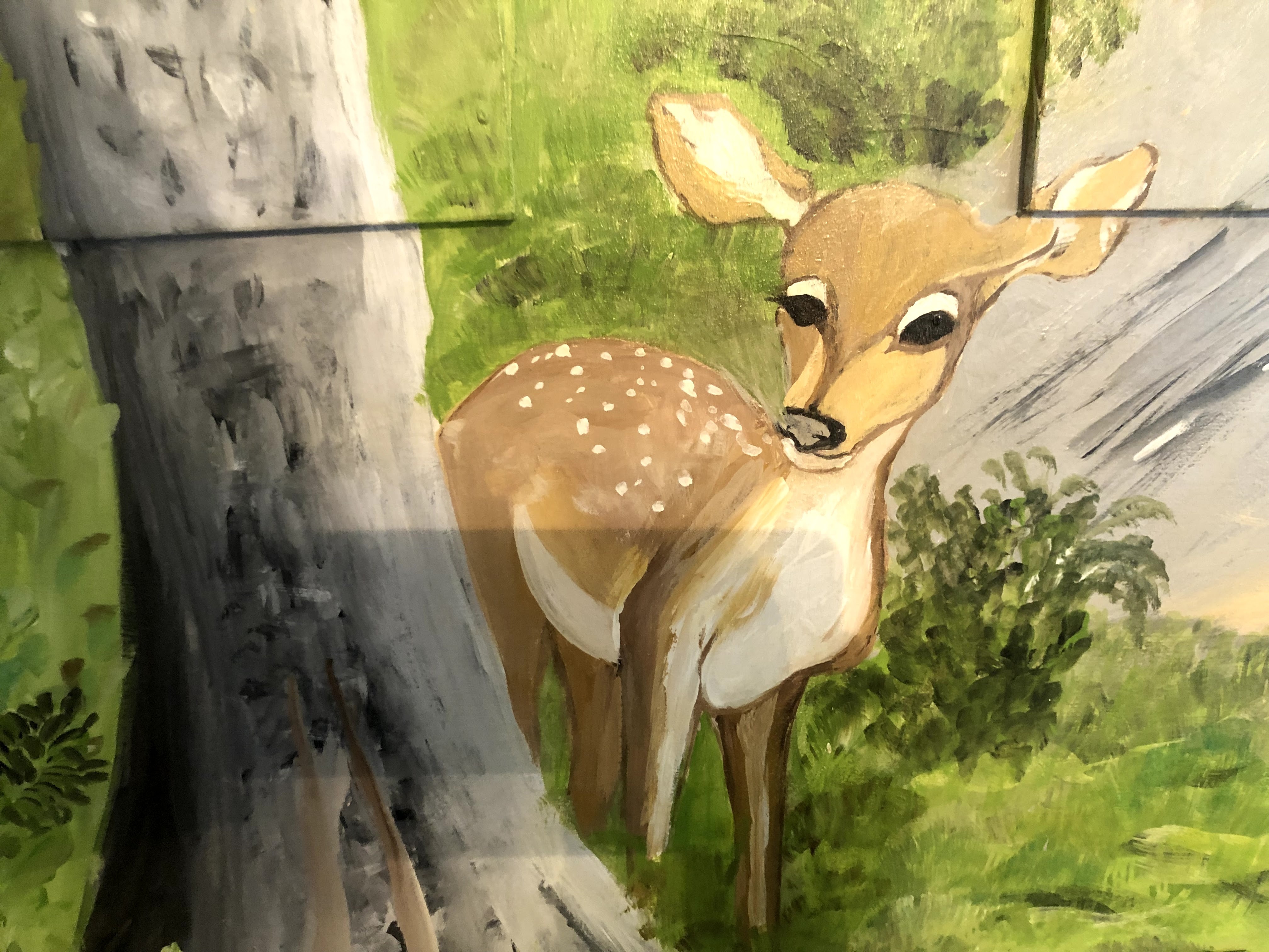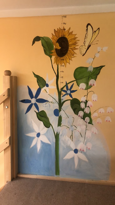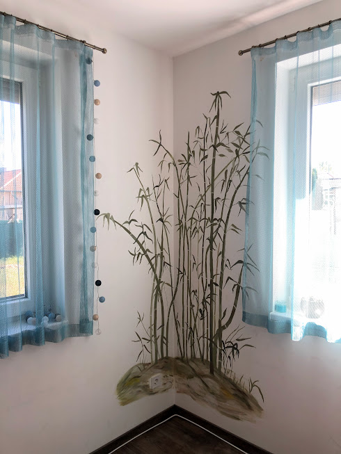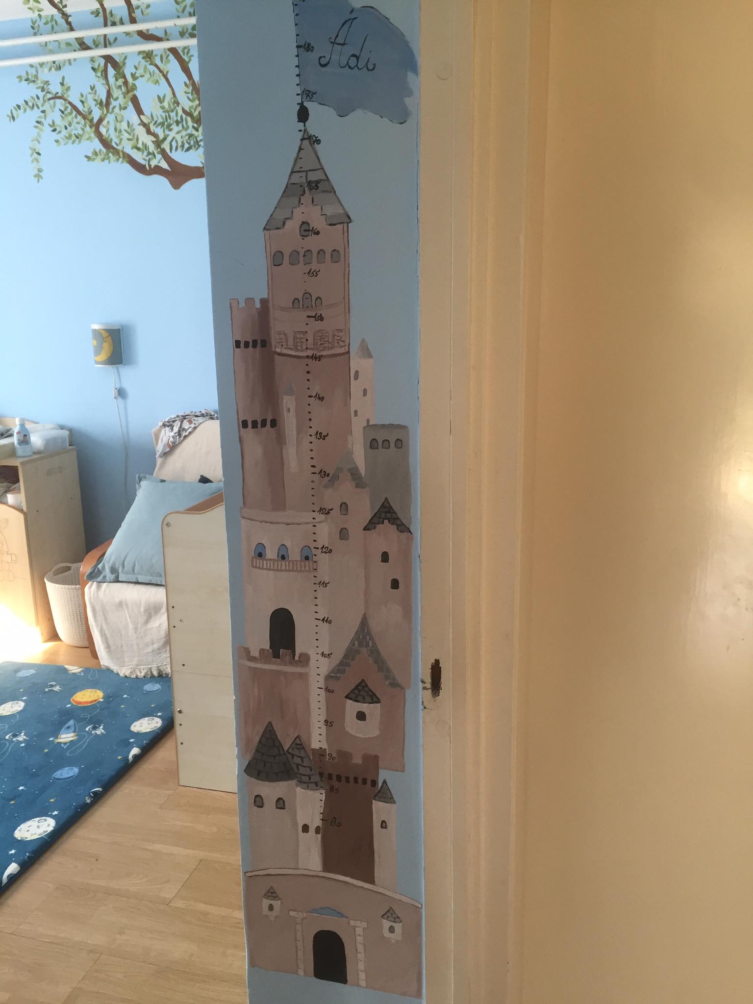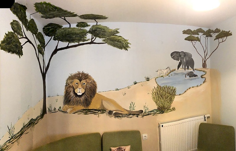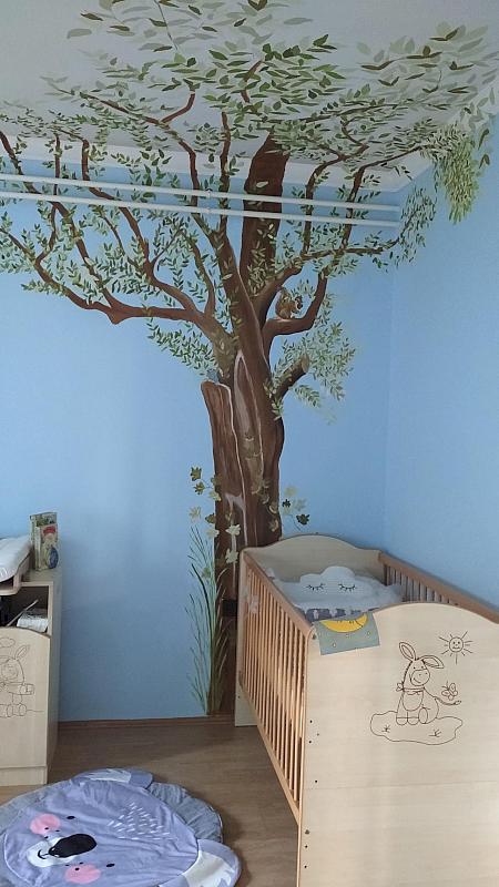 Legifjabb kisfiam születésekor gondoltam egy nagyot, és elhatároztam, hogy izgalmas szobát akarok a gyerkőcnek. Valami olyat, ahol pici korától érik pozitív ingerek. Ahol már attól jól érzi magát, ha pusztán a falat néziJ. Fogalmam sem volt, hogy sikerül majd, de megpróbáltam. Így született meg 8 évvel ezelőtt életem első falfestménye.