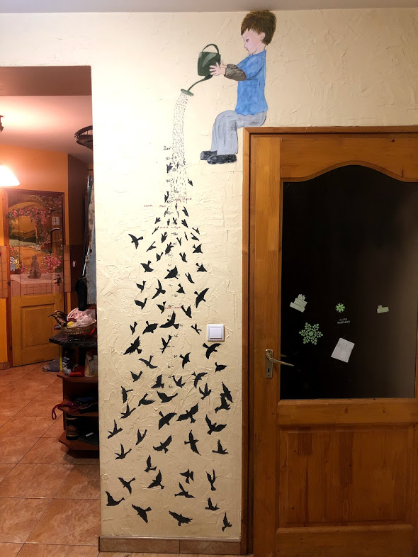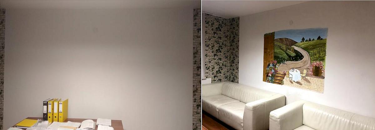 A munkálatokat mindig megörökítem, előtte, közben is és a végeredményről is készül fotó, hiszen ez az egyetlen módszer arra, hogy másoknak is megmutassam, mit lehet kihozni egy fehér falból (a falat nem igen lehet átcipelni egy kiállító terembeJ).